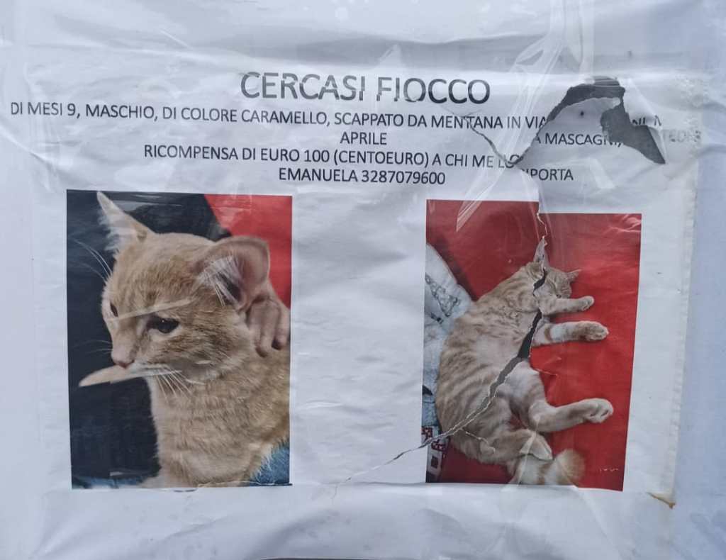 A Mentana, si cerca Fiocco, un gattino maschio di 9 mesi, dal manto color caramello, che si è smarrito nei giorni scorsi. L’appello arriva dalla proprietaria, che lancia un messaggio a tutta la cittadinanza affinché venga prestata attenzione nei dintorni per aiutare a ritrovarlo.