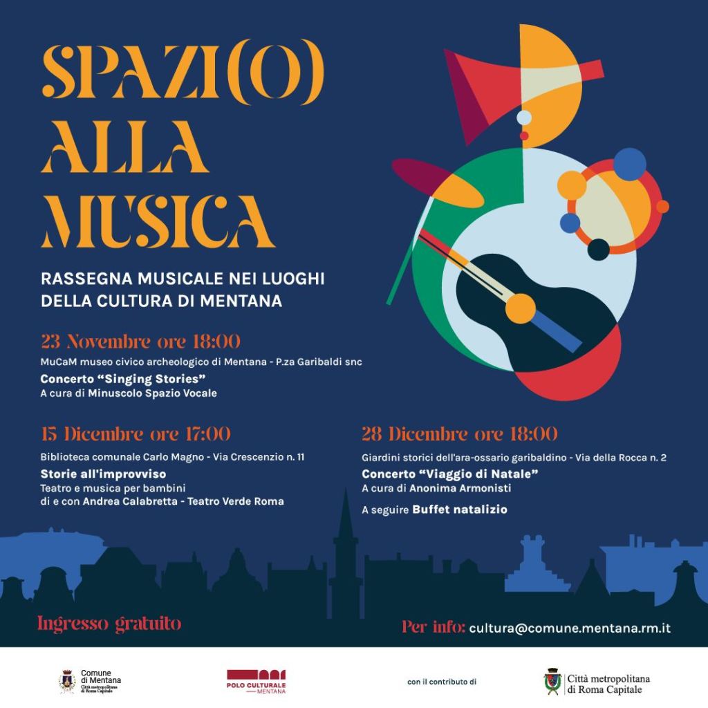 - 23 novembre – Il Museo Civico Archeologico di Mentana, in Piazza Garibaldi, ospiterà alle ore 18 il concerto “Singing Stories,” eseguito dal gruppo vocale Minuscolo Spazio Vocale.