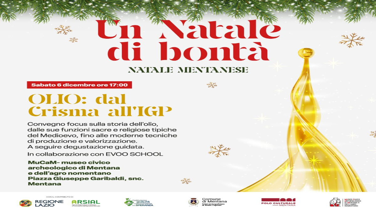 Nel cartellone degli eventi di “Un Natale di Bontà – Natale mentanese 2025”, il Polo Culturale di Mentana propone un appuntamento dedicato alla valorizzazione dell’olio, prodotto simbolo del territorio e della tradizione mediterranea.