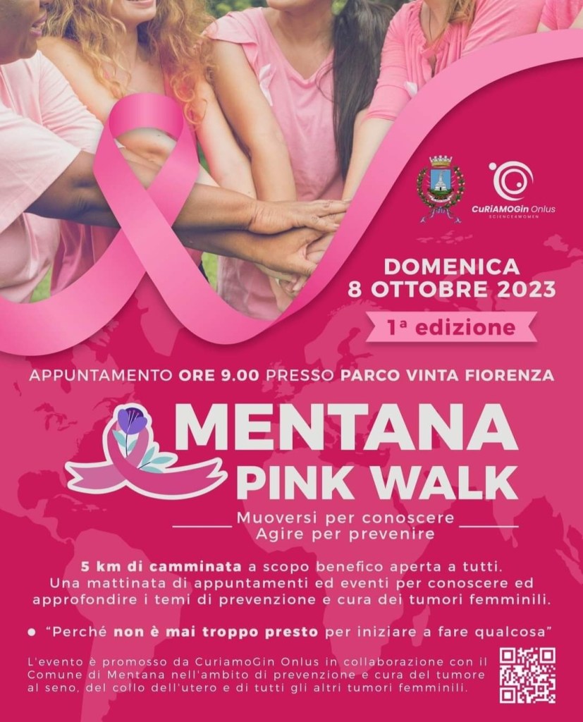Nell’ambito delle iniziative promosse in occasione della campagna di sensibilizzazione Ottobre Rosa 2023, l’Associazione “CuRiAMOGin” Onlus, in stretta collaborazione con il Comune di Mentana, è lieta di annunciare la realizzazione della “Mentana Pink Walk” prevista per l’8 ottobre 2023. Questo evento non competitivo invita la comunità locale a partecipare a una camminata congiunta attraverso il territorio di Mentana, con l’obiettivo principale di sensibilizzare sul tema della prevenzione dei tumori femminili.