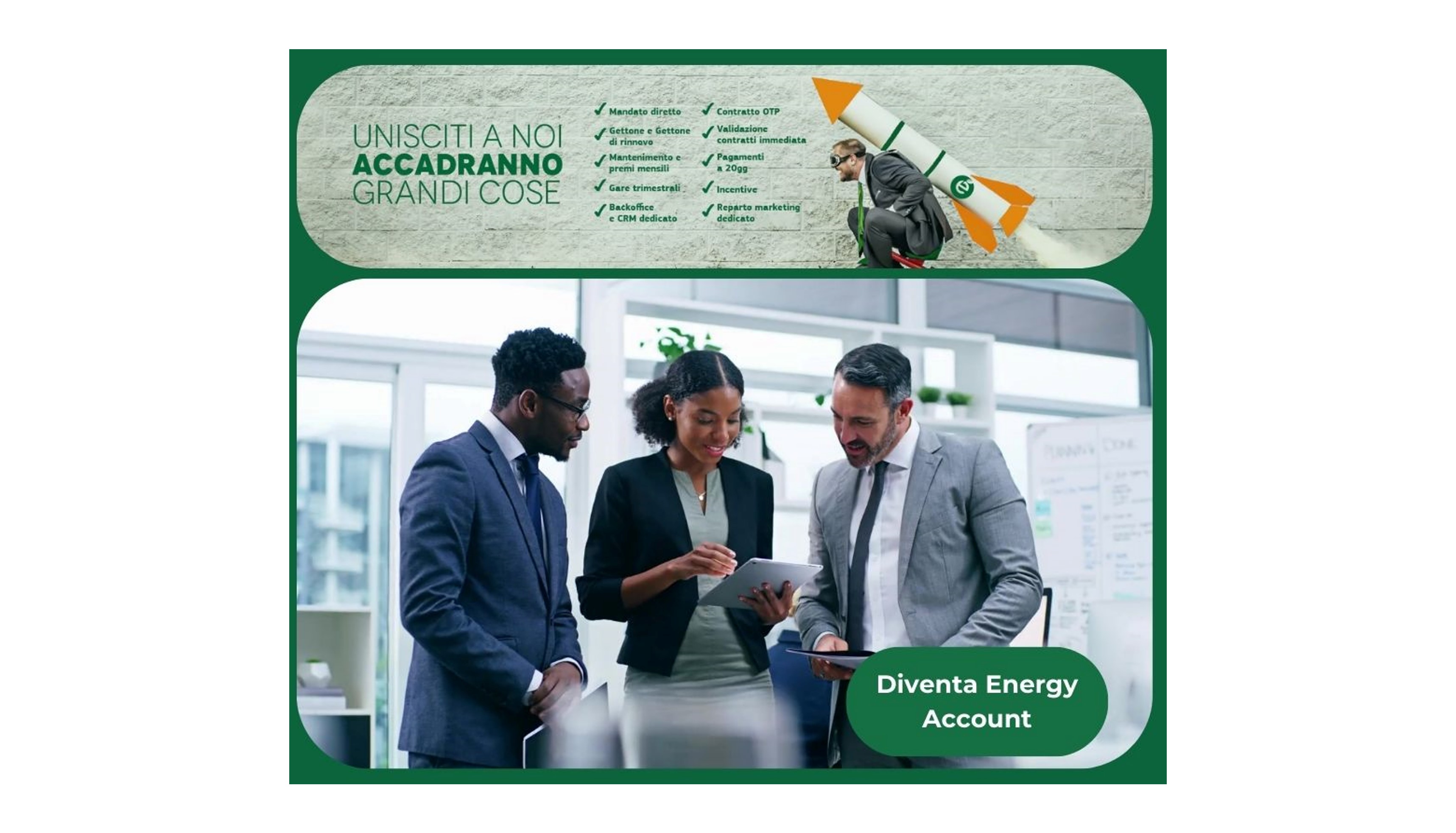 Per chi ha la voglia e l’energia di candidarsi per questa nuova avventura professionalità, vengono garantiti un mandato diretto, dei bonus mensili al raggiungimento di step minimi di produzione, il mantenimento mensile sui clienti acquisiti, il rinnovo gettone al 13mo mese e le gare trimestrali e annuali.