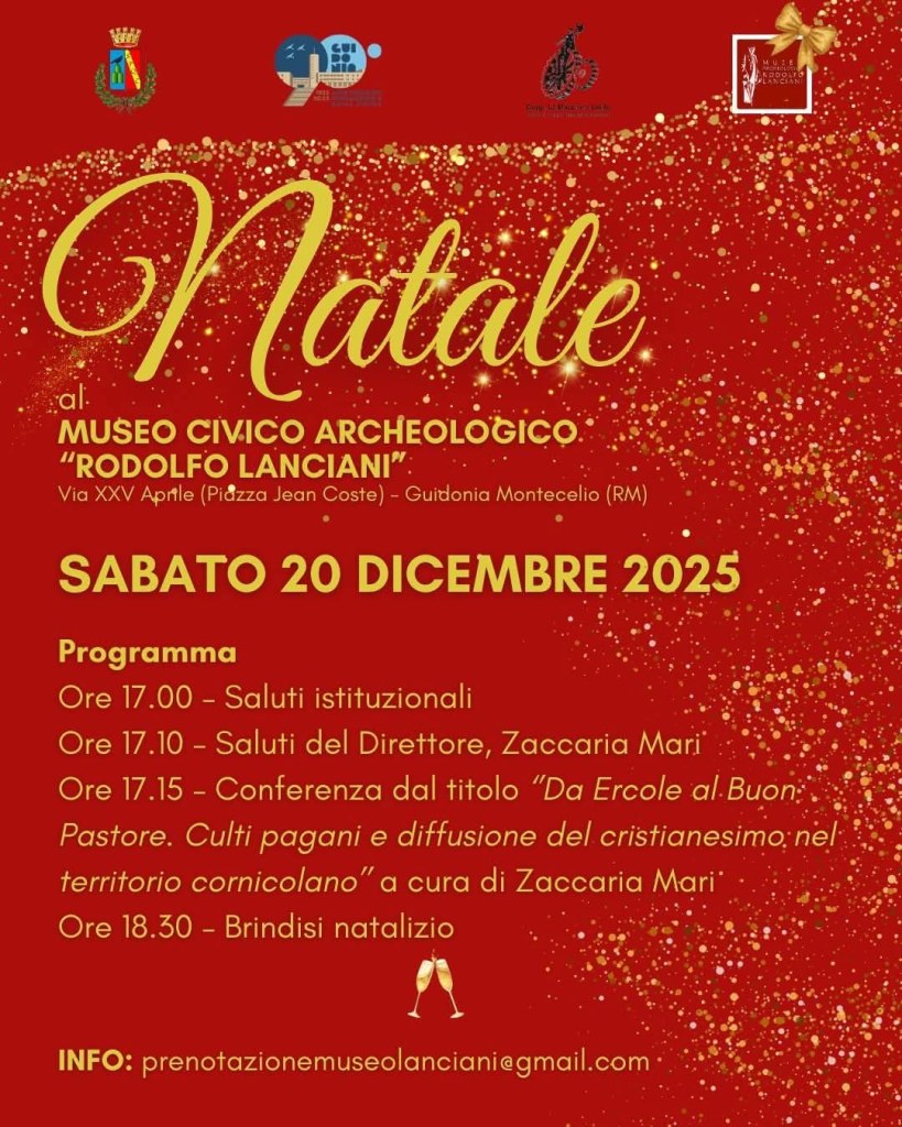 Il Museo Civico Archeologico Rodolfo Lanciani di Guidonia Montecelio si prepara a celebrare il Natale con un appuntamento culturale aperto alla cittadinanza. L’evento si terrà sabato 20 dicembre 2025 nella sede museale di Via XXV Aprile (Piazza Jean Coste).