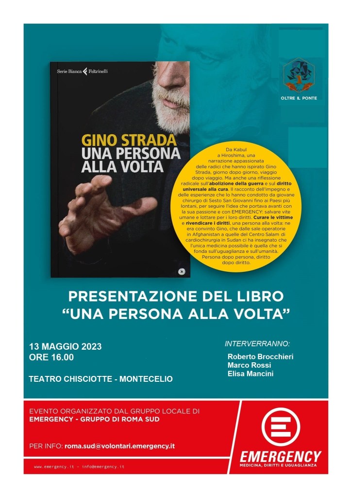 La presentazione del libro postumo di Gino Strada avverrà sabato 13 maggio 2023 alle 16.00 il Teatro Chisciotte di Montecelio. Interverranno Marco Rossi di Emergency, Elisa Mancini per le letture, modererà l’incontro Marco Brocchieri.