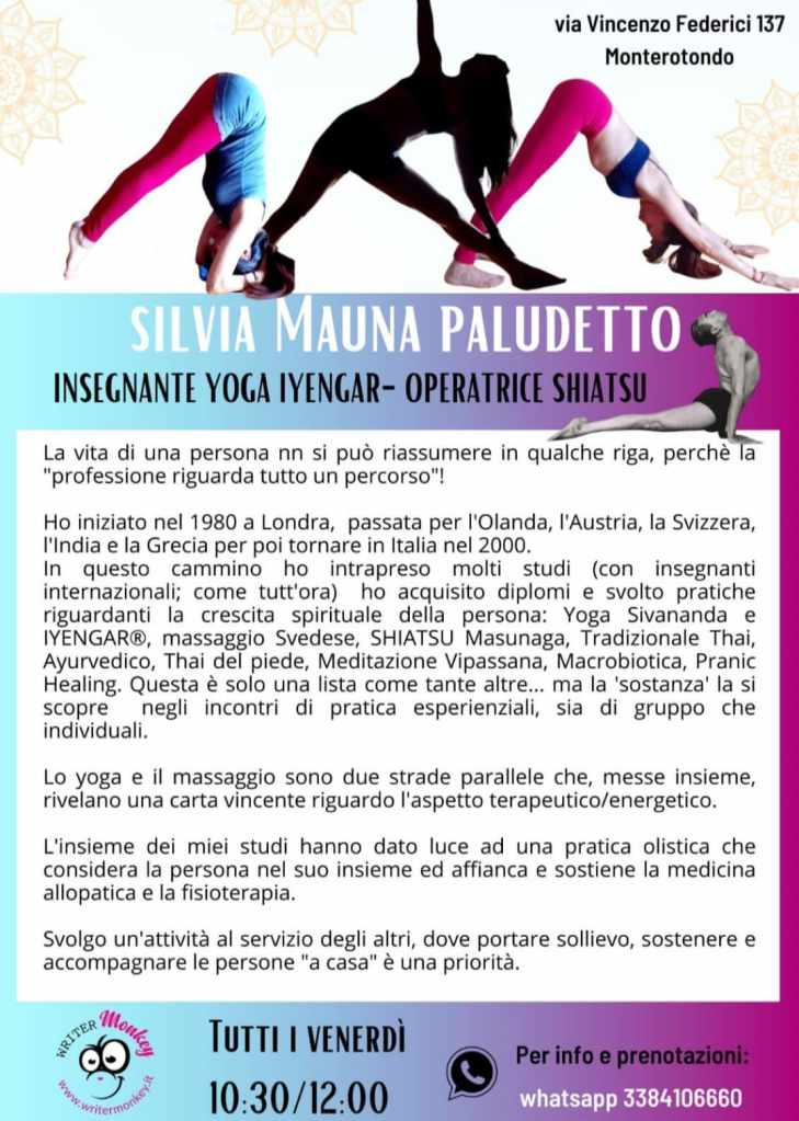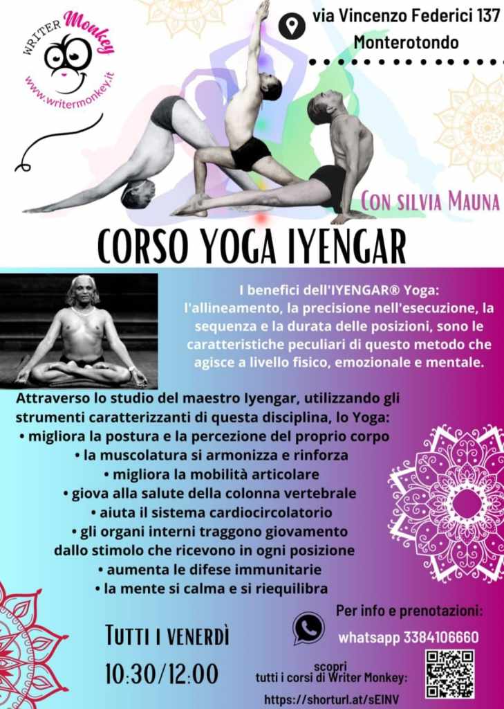 A partire da settembre, il Writer Monkey di Monterotondo aprirà anche le porte al Corso di Yoga IYENGAR tenuto da Silvia Mauna Paludetto. Questo corso, che si terrà ogni venerdì dalle 10:30 alle 12:00, promette di offrire una pratica di yoga che punta a migliorare la salute fisica, emozionale e mentale dei partecipanti attraverso l’allineamento, la precisione e la durata delle posizioni.