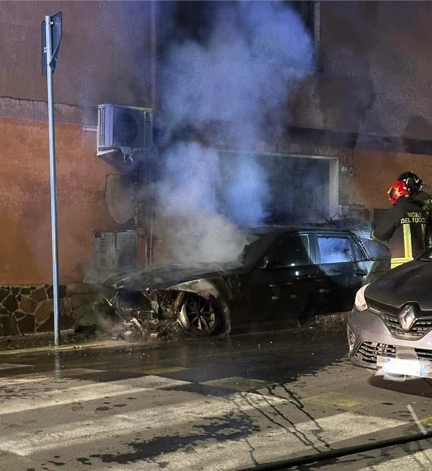 Un veicolo ha preso fuoco nei pressi della biblioteca comunale di Monterotondo.