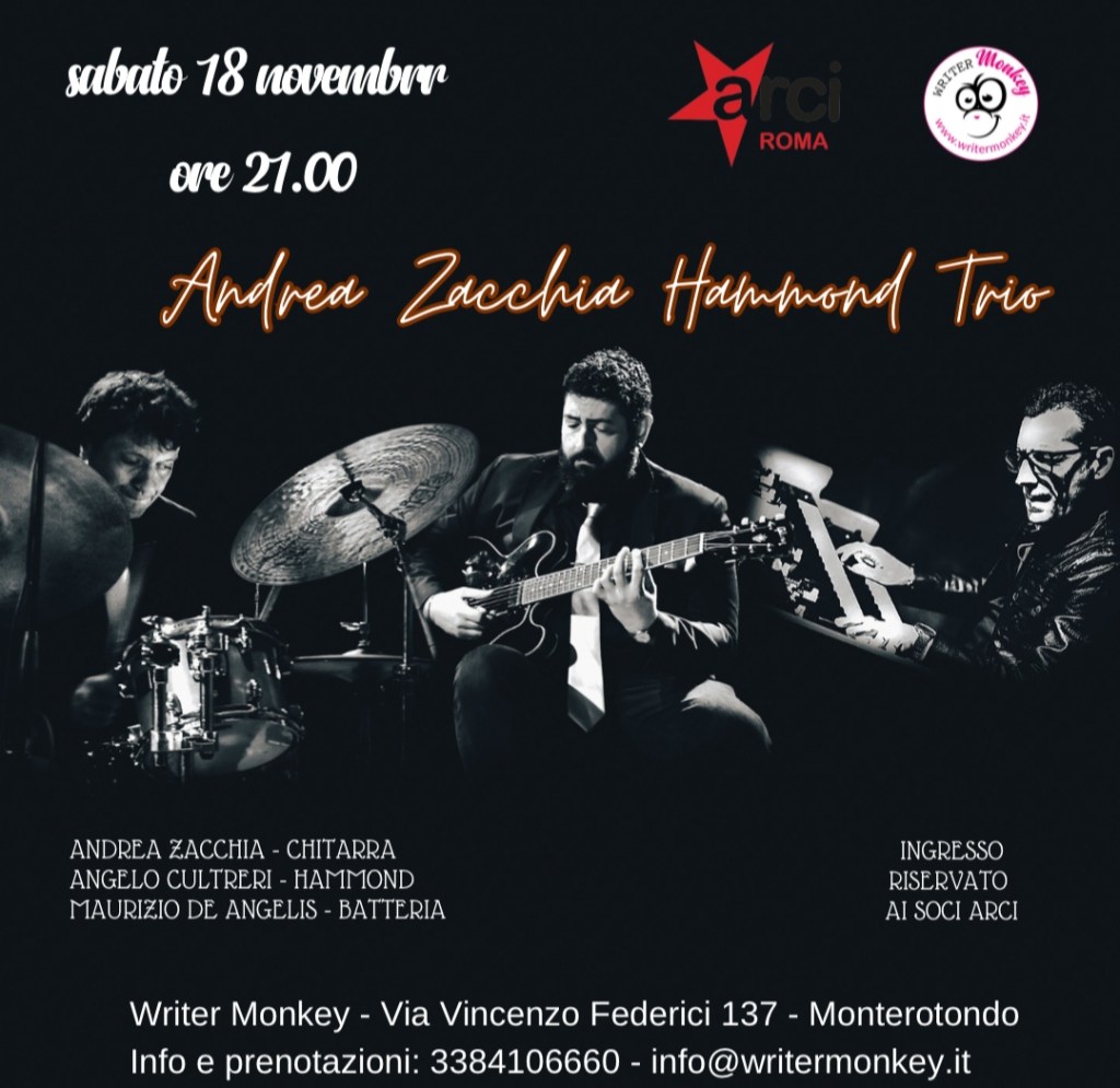 MONTEROTONDO – Concerto Jazz Bebop al Circolo Writer Monkey con Andrea Zacchia Hammond Trio