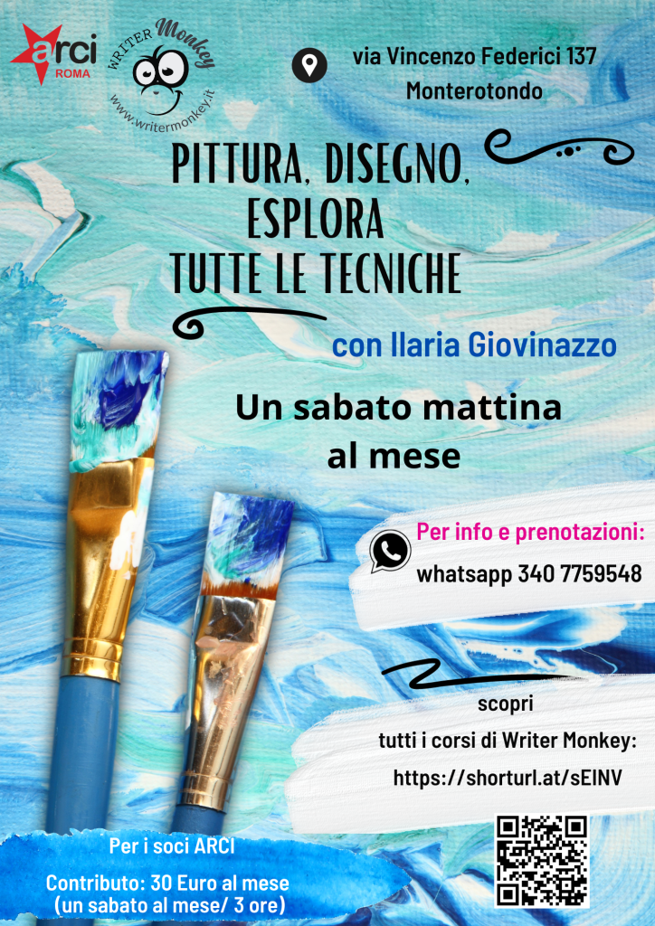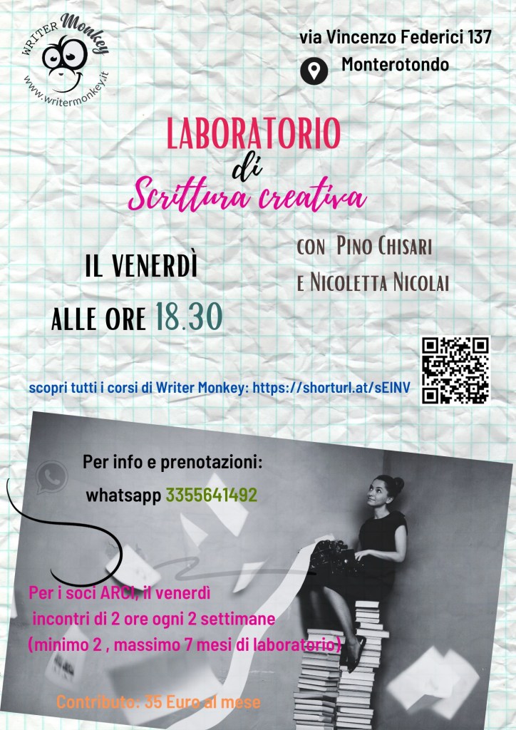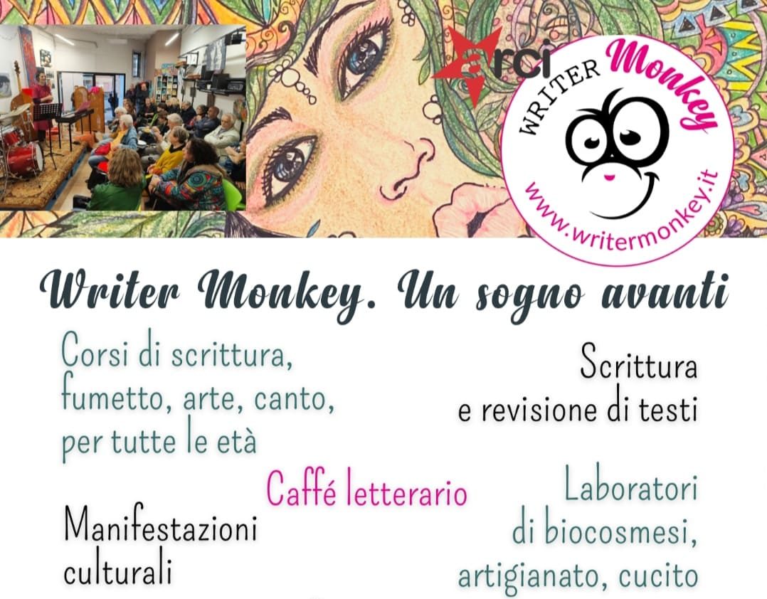Writer Monkey è un circolo arci. Laboratori d’arte per ogni età, eventi culturali, scrittura, libri, in Via Vincenzo Federici 137 a Monterotondo. Tel. 3384106660 info@writermonkey.it