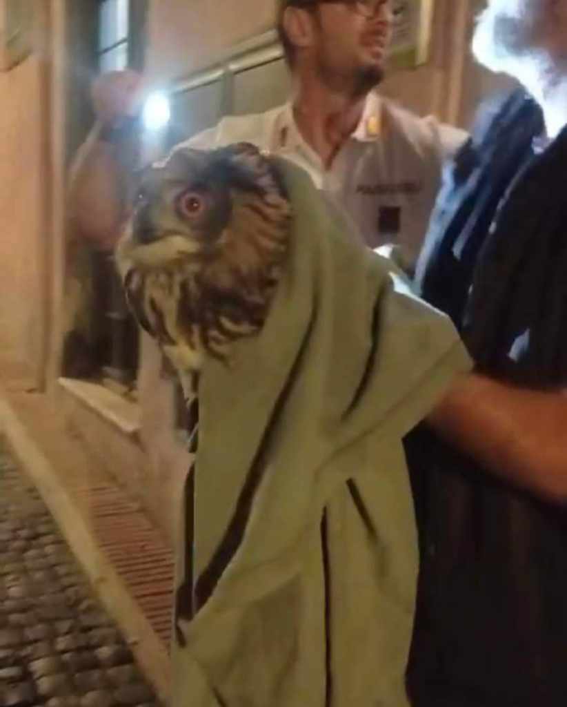 A Monterotondo, una curiosa e affettuosa presenza è stata messa in salvo oggi. Il gufo reale, da anniammirato tra i residenti, ha ricevuto aiuto da parte degli agenti della Polizia Locale di Monterotondo e dai Carabinieri Forestali di Palombara Sabina. Questo intervento è stato possibile grazie alla segnalazione di un cittadino di Via Bellini, il quale ha notato il povero rapace bloccato in un’intercapedine tra due edifici.