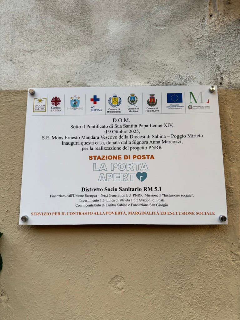 È stata inaugurata ieri a Monterotondo, in via Ricciotti Garibaldi, la stazione di posta “La Porta Aperta”, un nuovo centro di servizi dedicato all’accoglienza, al sostegno e al reinserimento sociale delle persone in condizioni di fragilità. Un progetto promosso dalla Diocesi di Sabina-Poggio Mirteto, realizzato grazie alla Fondazione San Giorgio e al sostegno delle amministrazioni comunali di Monterotondo, Mentana e Fonte Nuova insieme alla Asl Roma 5.
