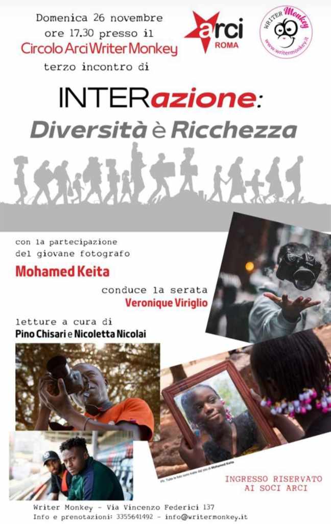 L’atteso appuntamento con INTERazione si avvicina: Domenica 26 novembre alle 17.30, il giovane e talentuoso fotografo Mohamed Keita sarà il protagonista di una serata emozionante e culturalmente coinvolgente, al Circolo ARCI Writer Monkey, in Via Vincenzo Federici 137, a Monterotondo.