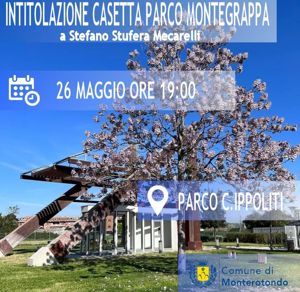 Venerdì 26 maggio alle ore 19.00, a Monterotondo, verrà intitolata la casetta del Parco C.Ippoliti al compianto Stefano Stufera Mecarelli, giornalista ed editore cresciuto nel quartiere Montegrappa.
