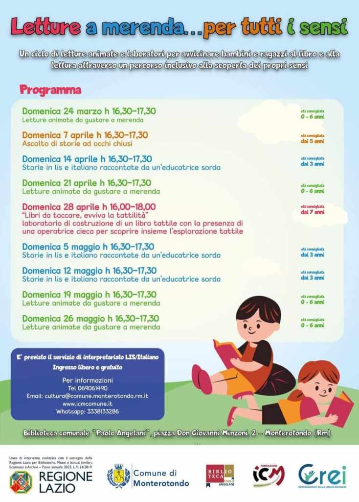 Finanziato dalla Regione Lazio e realizzato dal Comune di Monterotondo, in collaborazione con la Cooperativa Sociale CREI – Interpreti LIS e la Fondazione culturale Icm Monterotondo, il progetto mira ad accogliere tutte le bambine, i bambini e le loro famiglie, offrendo un accesso libero e gratuito.