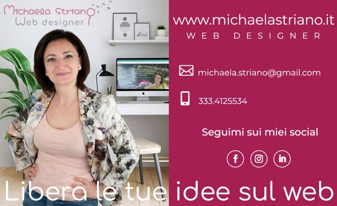 Michaela Striano non è solo una web designer, ma anche una persona che coltiva numerosi interessi culturali, dall’apprendimento e la formazione alla lettura, al viaggio e alla fotografia. Ha anche creato un blog chiamato “Il mio tempo migliore”, dedicato agli eventi, al turismo e alla cultura, interamente progettato e realizzato in autonomia.