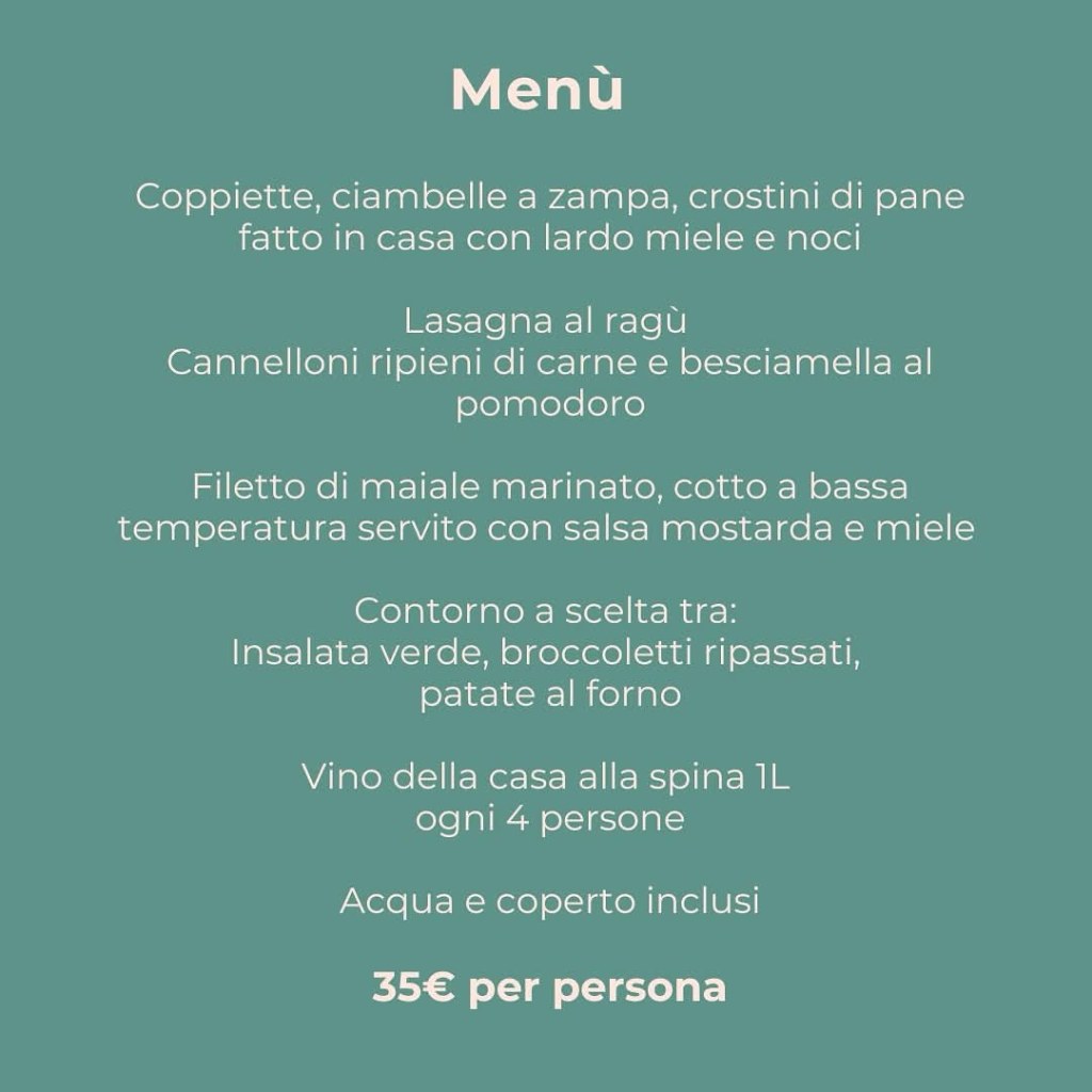 Il tutto accompagnato da vino della casa alla spina (1 litro ogni 4 persone), acqua e coperto inclusi. Il costo è di 35€ a persona.