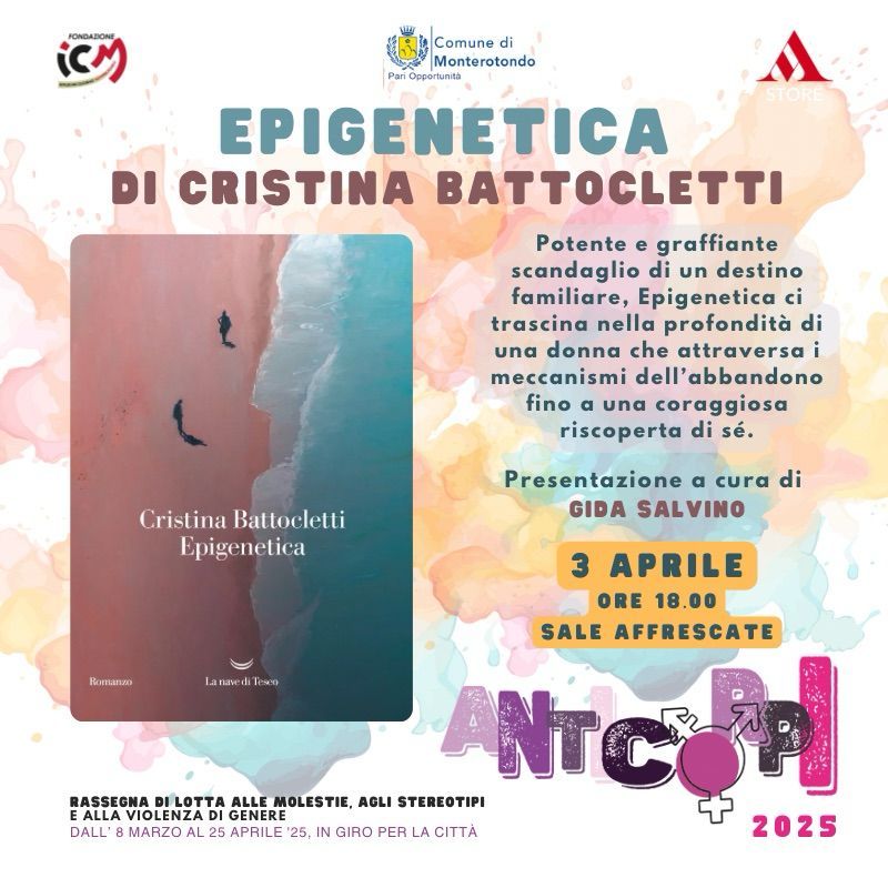 Giovedì 3 aprile alle ore 18.00, presso le Sale Affrescate del Comune di Monterotondo, si terrà l’incontro con la giornalista e scrittrice Cristina Battocletti, che presenterà il suo ultimo libro “Epigenetica”. Il dialogo sarà condotto da Gida Salvino, offrendo al pubblico uno spazio di riflessione profonda e personale.