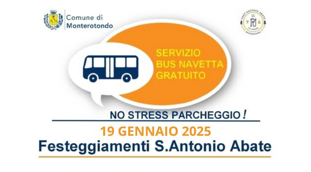 In occasione dei festeggiamenti di Sant’Antonio Abate a Monterotondo, domenica 19 gennaio 2025 sarà attivo un servizio di navetta gratuita grazie alla collaborazione con Rossi Bus e BeeBus.