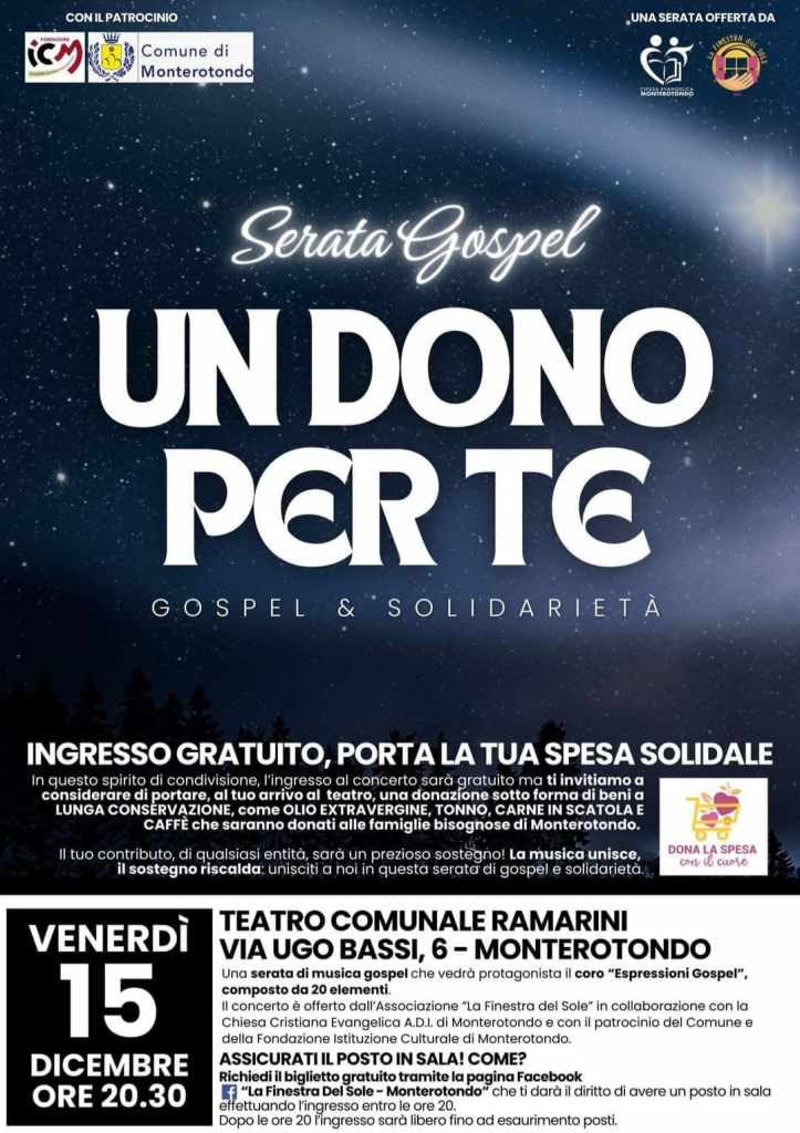L’evento, organizzato con passione e dedizione dall’Associazione “La Finestra del Sole”, sarà reso possibile grazie alla collaborazione della Chiesa Cristiana Evangelica A.D.I. di Monterotondo e al patrocinio del Comune e della Fondazione Istituzione Culturale di Monterotondo.