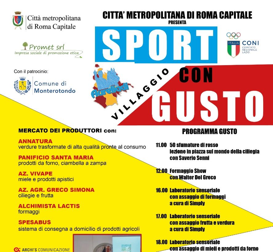Monterotondo si prepara ad accogliere una bellissima giornata dedicata allo sport e al piacere della buona cucina, promossa dalla Città Metropolitana di Roma Capitale con il patrocinio del CONI Comitato Regionale Lazio e del Comune di Monterotondo. L’evento, che si terrà domenica 11 giugno dalle 11.00 alle 21:00, promette di offrire un’esperienza coinvolgente per il benessere psicofisico di tutti i partecipanti.