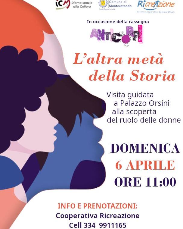 Domenica 6 aprile 2025 alle ore 11:00, a Monterotondo, si terrà la visita guidata dal titolo “L’altra metà della Storia”, organizzata da Ricreazione cooperativa sociale nell’ambito della rassegna “Anticorpi – contro molestie, stereotipi e violenza di genere”.