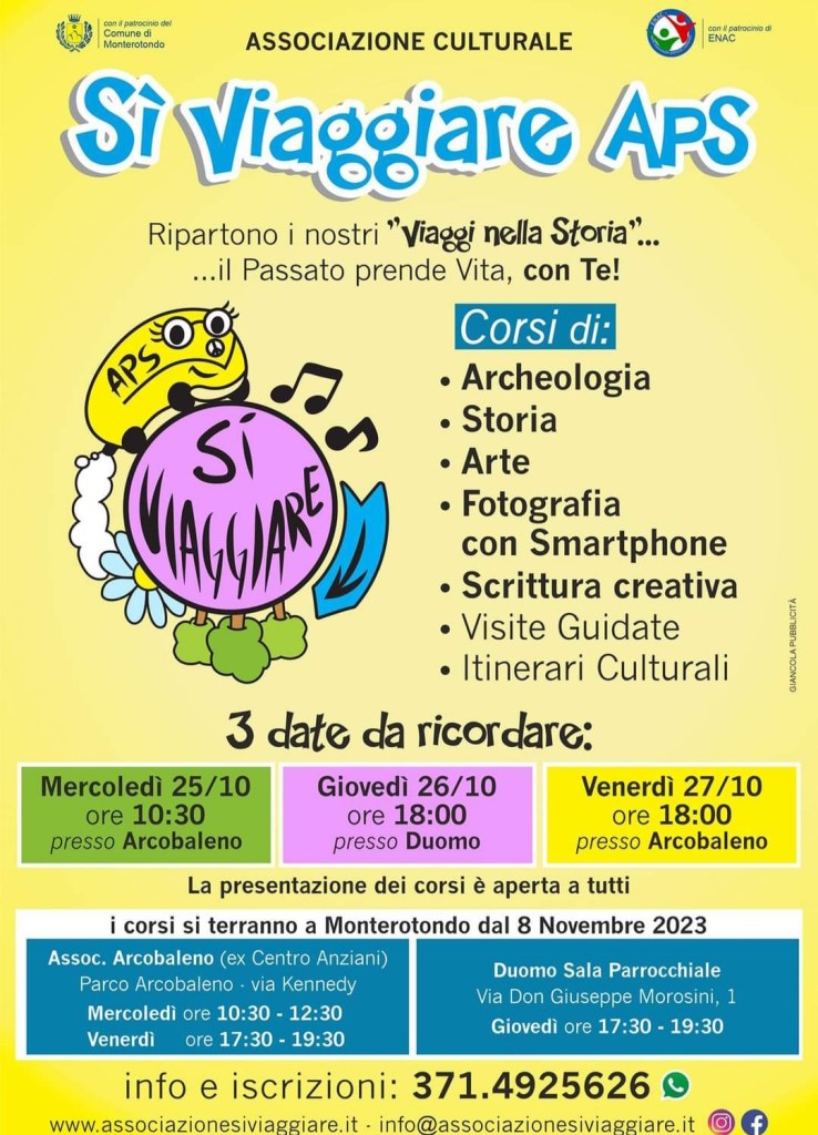 A Monterotondo ci saranno gli Open Day organizzati dall’Associazione Culturale “Si Viaggiare APS”, con visite guidate, e corsi di arte, fotografia, storia, archeologa e molto altro.