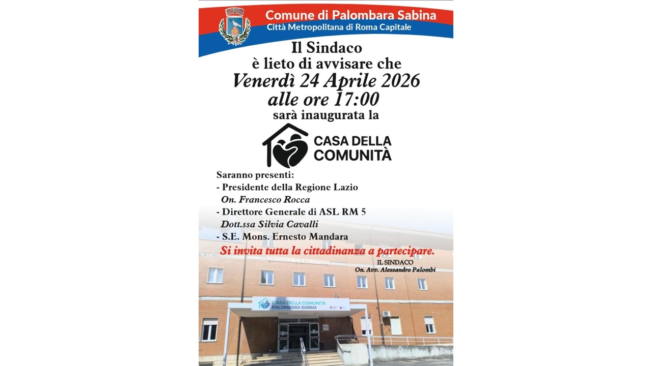 Importante novità per il territorio di Palombara Sabina, dove sarà inaugurata la nuova Casa della Comunità, struttura destinata a diventare un punto di riferimento per la sanità locale.