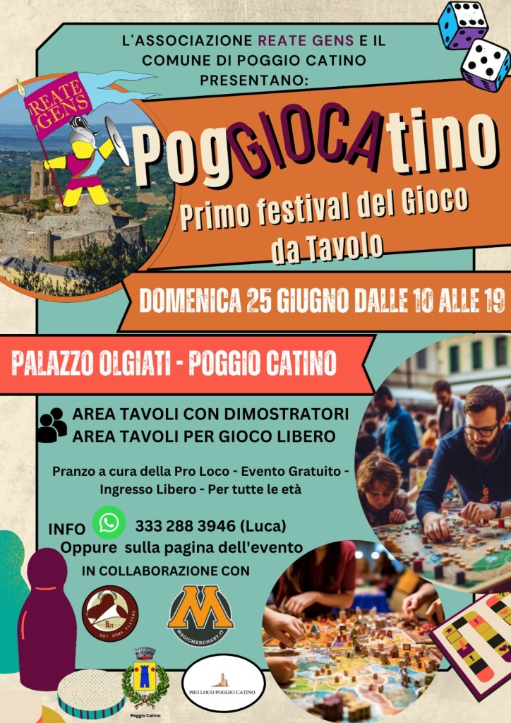 L’associazione Reate Gens – Ludens In Tabula ha organizzato, a Poggio Catino (RI), il Festival del gioco da tavolo “pogGIOCAtino”, il primo festival del genere nella Sabina.