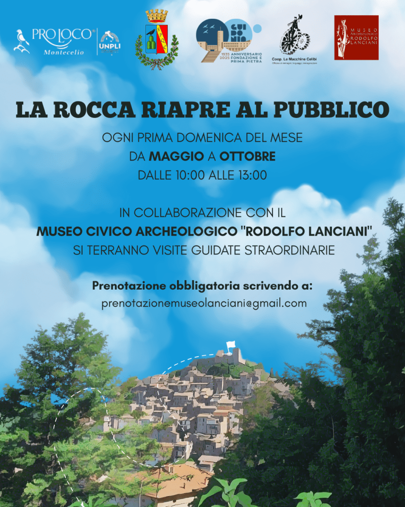 A partire da domenica 4 maggio 2025, la Rocca medievale di Montecelio riaprirà le sue porte al pubblico grazie all’iniziativa della Pro Loco Montecelio, in collaborazione con il Museo Civico Archeologico “Rodolfo Lanciani”. Ogni prima domenica del mese, da maggio a ottobre, sarà possibile partecipare a visite guidate straordinarie che condurranno i visitatori attraverso il borgo storico e l’antica Rocca, simbolo dell’identità locale e della memoria collettiva.