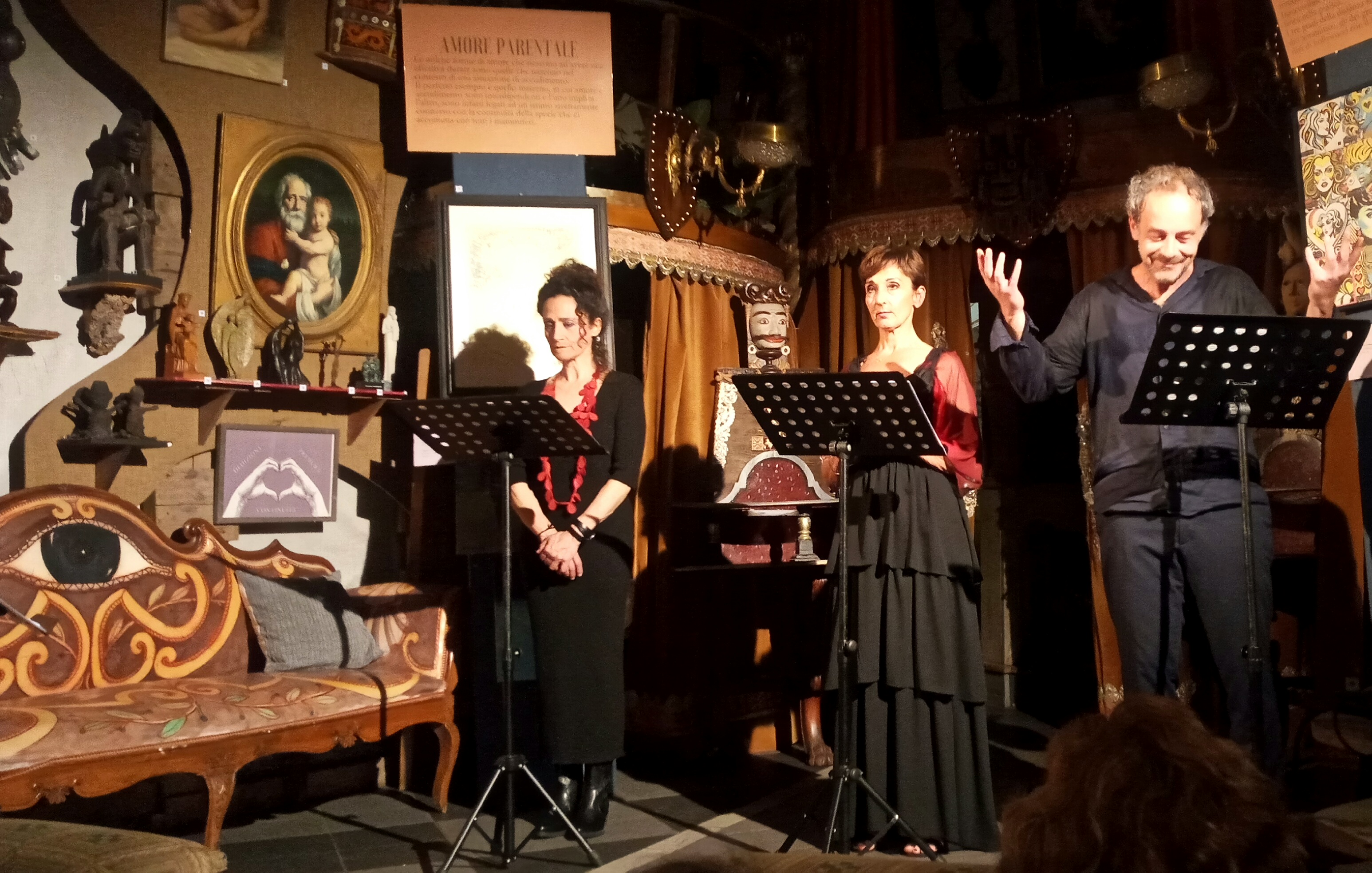 Gli occhi che brillavano di Gloria mentre le sue parole prendevano corpo, l’espressione evocativa di Maria Pia, l’interpretazione immersiva di Andrea e la performance musicata di Alessandro hanno accompagnato per mano i presenti in sala lungo i sentieri intrecciati del cuore. Luci e ombre su di un panorama esistenziale emotivo, permeato ancora troppo di cultura patriarcale e amore carnefice, sono emerse tangibili e accorate.