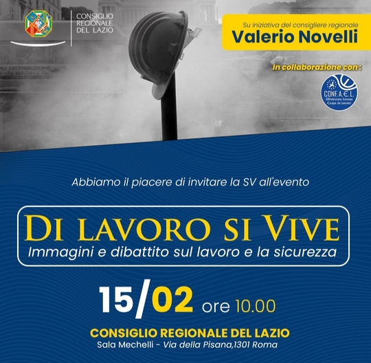 “Di Lavoro si Vive” è il titolo della mostra-convegno prevista per il 15 febbraio, dalle 10:00 alle 13:00, nella sala Mechelli presso il Consiglio regionale del Lazio, a Roma. L’obiettivo principale è sensibilizzare sull’importanza della sicurezza nei luoghi di lavoro e sul diritto fondamentale di ogni individuo di operare in un ambiente che tuteli la sua salute fisica e mentale.