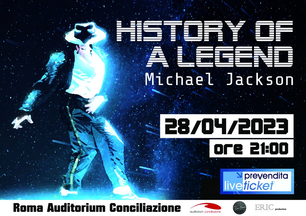 Venerdì 28 aprile, alle ore 21.00, presso l’Auditorium Conciliazione a Roma, in Via della Conciliazione 4, andrà in scena “History of a Legend – Michael Jackson“, uno spettacolo con quaranta artisti e cinque cantanti, orchestra e Step Gang Evolution diretta dal coreografo di Full Dance Italia Stefano Baldini.