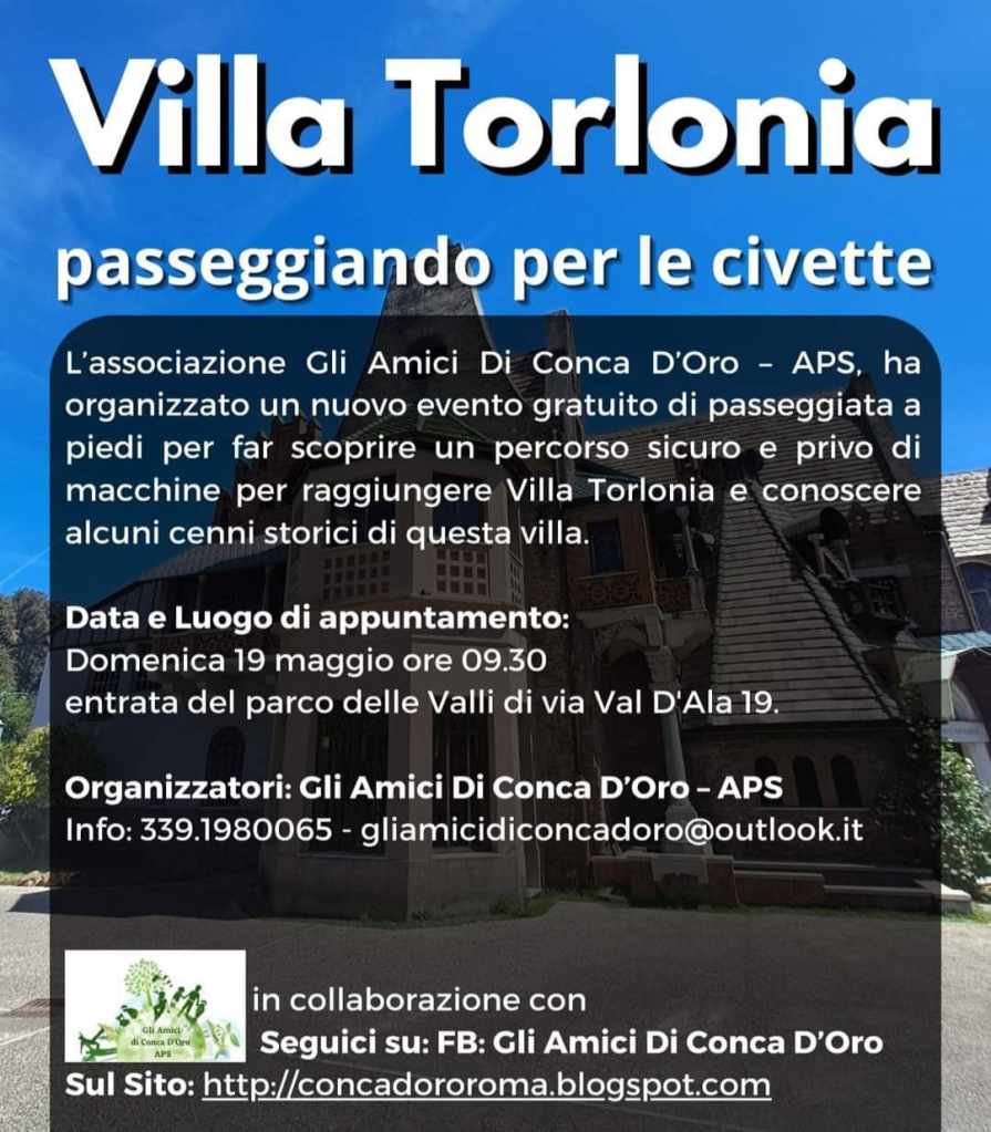 Domenica 19 maggio l’associazione di promozione sociale Gli Amici Di Conca D’Oro – APS https://concadororoma.blogspot.com/ , ha organizzato un evento gratuito di passeggiata a piedi per raggiungere villa Torlonia dal parco delle Valli.