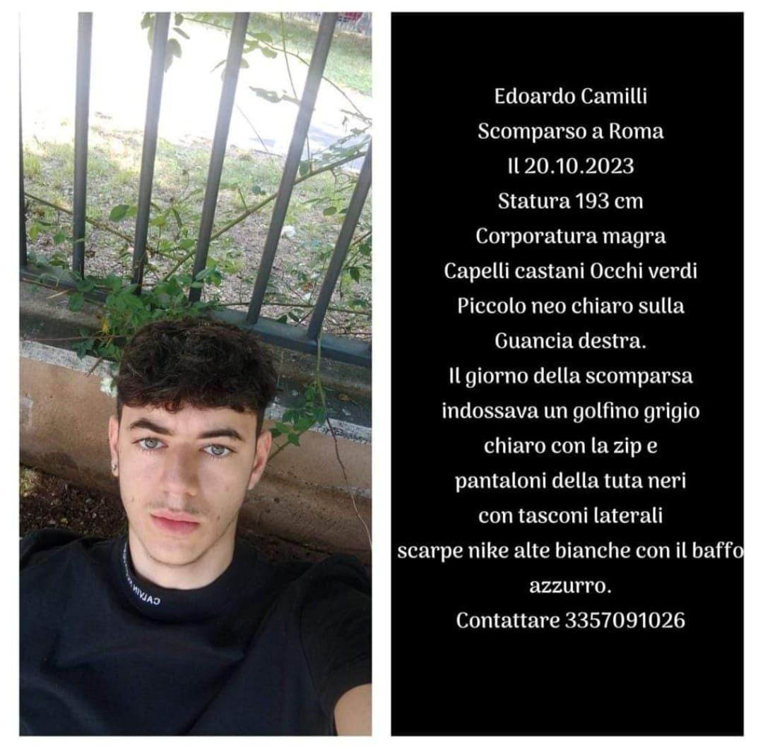 Da venerdì 20 ottobre, un giovane, Edoardo Camilli, è scomparso da Roma. Il ragazzo,dai tratti gentili e lo sguardo luminoso, è scomparso nel nulla, lasciando dietro di sé una scia di mistero e preoccupazione.