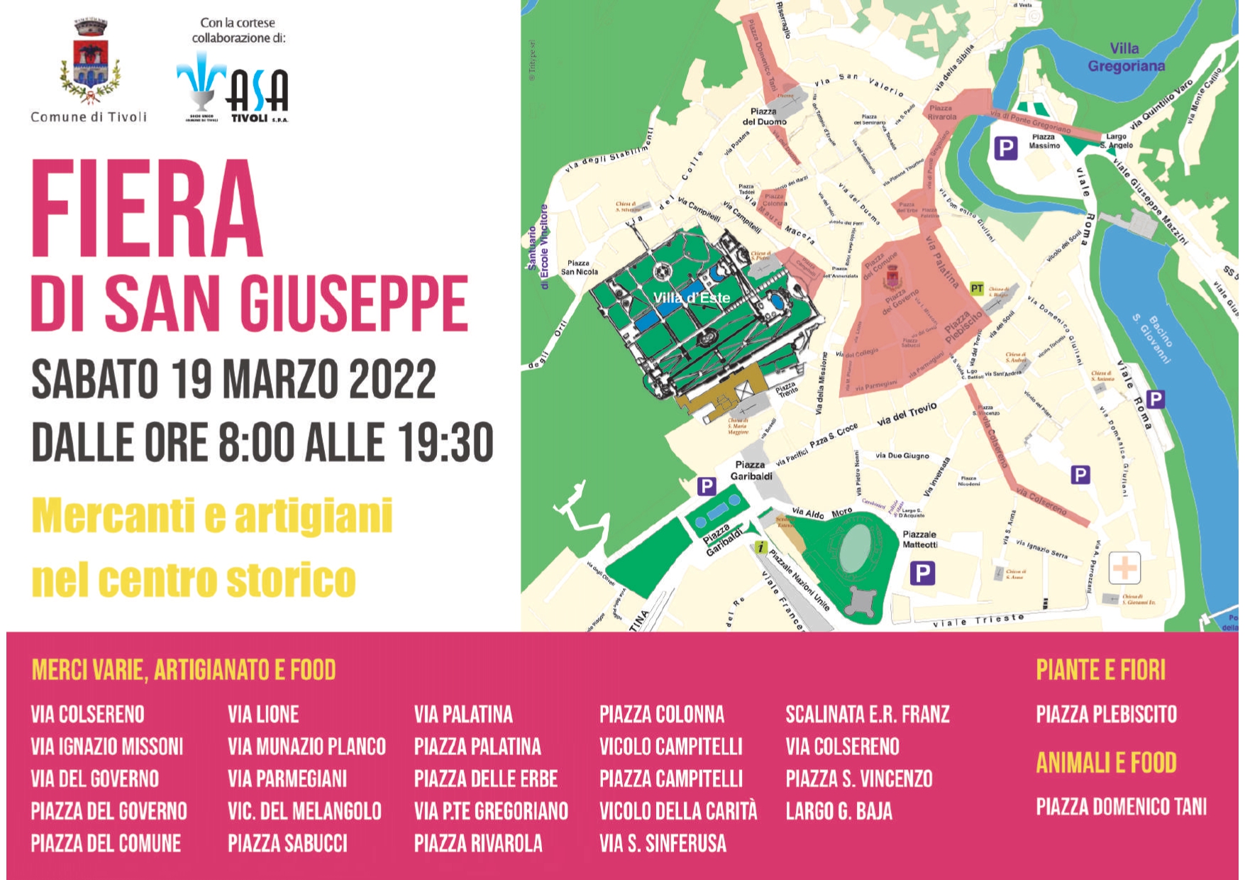 Dopo due anni di stop dovuti all’emergenza coronavirus, sabato 19 marzo torna la Fiera di San Giuseppe a Tivoli.