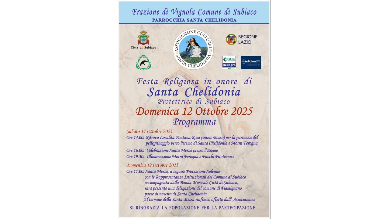 Nel fine settimana, la comunità di Subiaco si appresta a celebrare la festa religiosa in onore di Santa Chelidonia, protettrice della città.