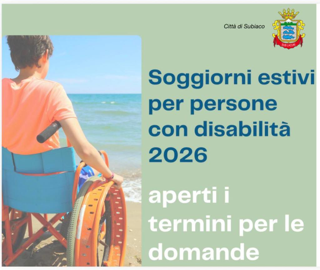 Il Comune di Subiaco ha pubblicato l’Avviso pubblico per la partecipazione ai soggiorni estivi per persone con disabilità 2026, rivolti ai cittadini del Distretto socio-sanitario RM 5.4, nell’ambito della ASL Roma 5.