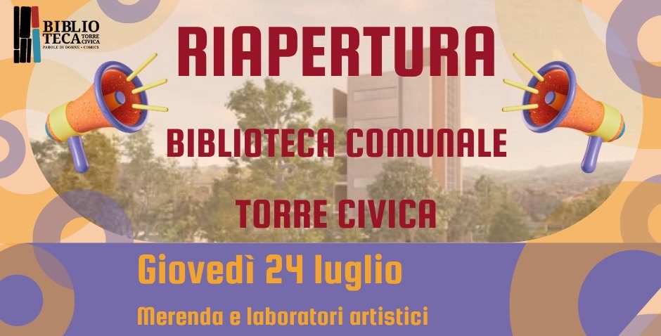 Giovedì 24 luglio alle ore 17.30, presso la Torre Civica di Piazza Renato Borelli, riaprirà ufficialmente al pubblico la biblioteca...