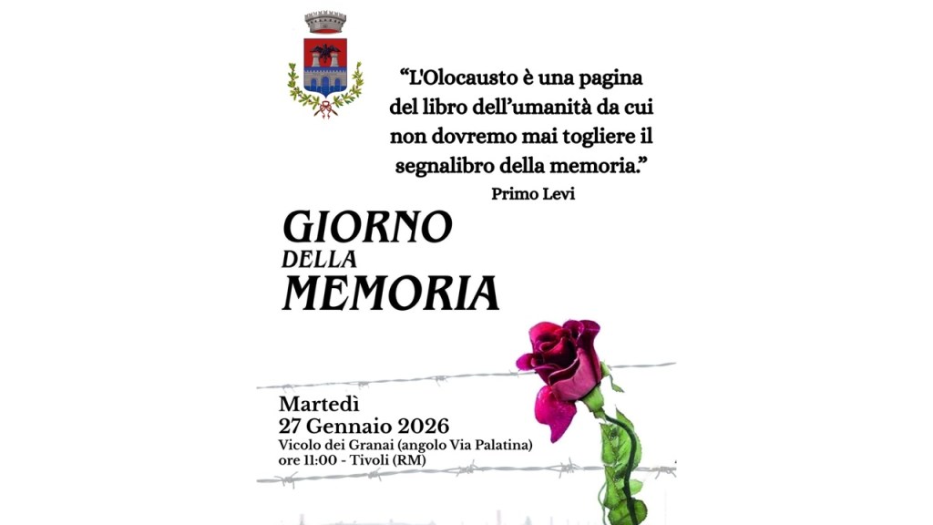 L’Amministrazione Comunale di Tivoli promuove una cerimonia commemorativa in occasione del Giorno della Memoria, in programma martedì 27 gennaio, a...