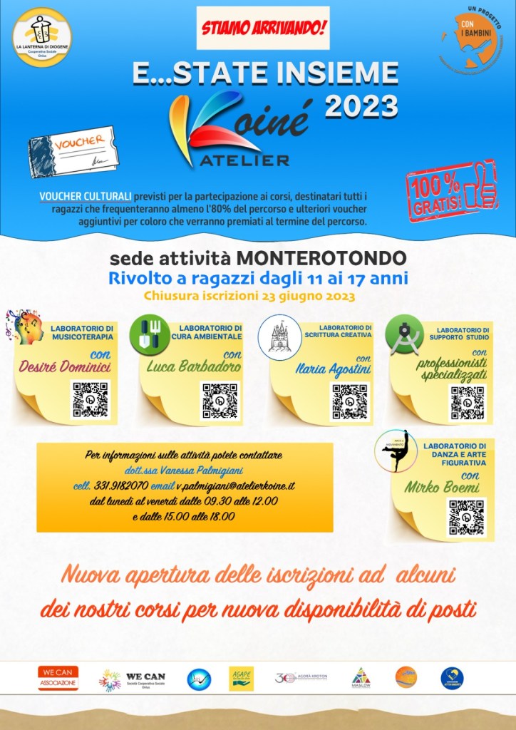 A Monterotondo sono riaperte le iscrizioni a cinque laboratori per consentire ai ragazzi dagli 11 a 17 anni di aderire...