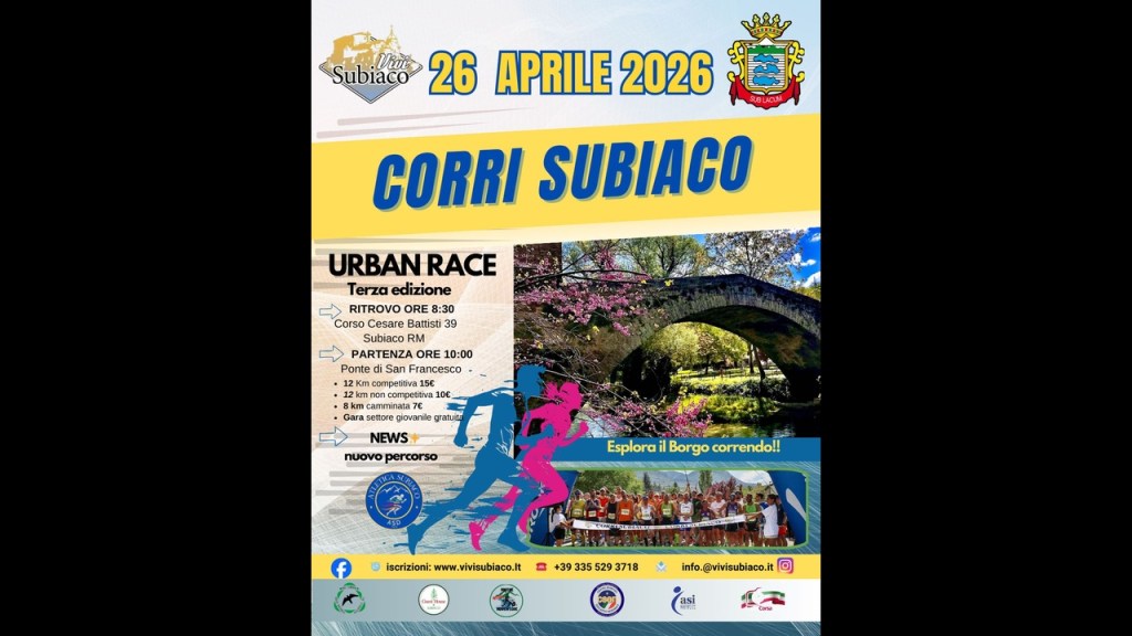 Torna a Subiaco Corri Subiaco, la Urban Race di primavera che domenica 26 aprile 2026 animerà il centro storico e...