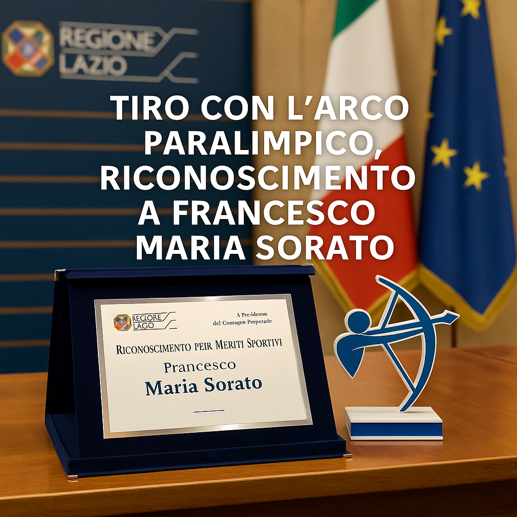 Un prestigioso riconoscimento è stato conferito a Francesco Maria Sorato, atleta paralimpico originario di Magliano Sabina e vincitore della medaglia d’oro agli Europei di tiro con l’arco svoltisi a Istanbul. La cerimonia si è svolta presso la Sala Bartoloni del Consiglio regionale del Lazio, alla presenza del presidente Antonello Aurigemma, della consigliera Eleonora Berni e del sindaco di Magliano Sabina, Giulio Falcetta.