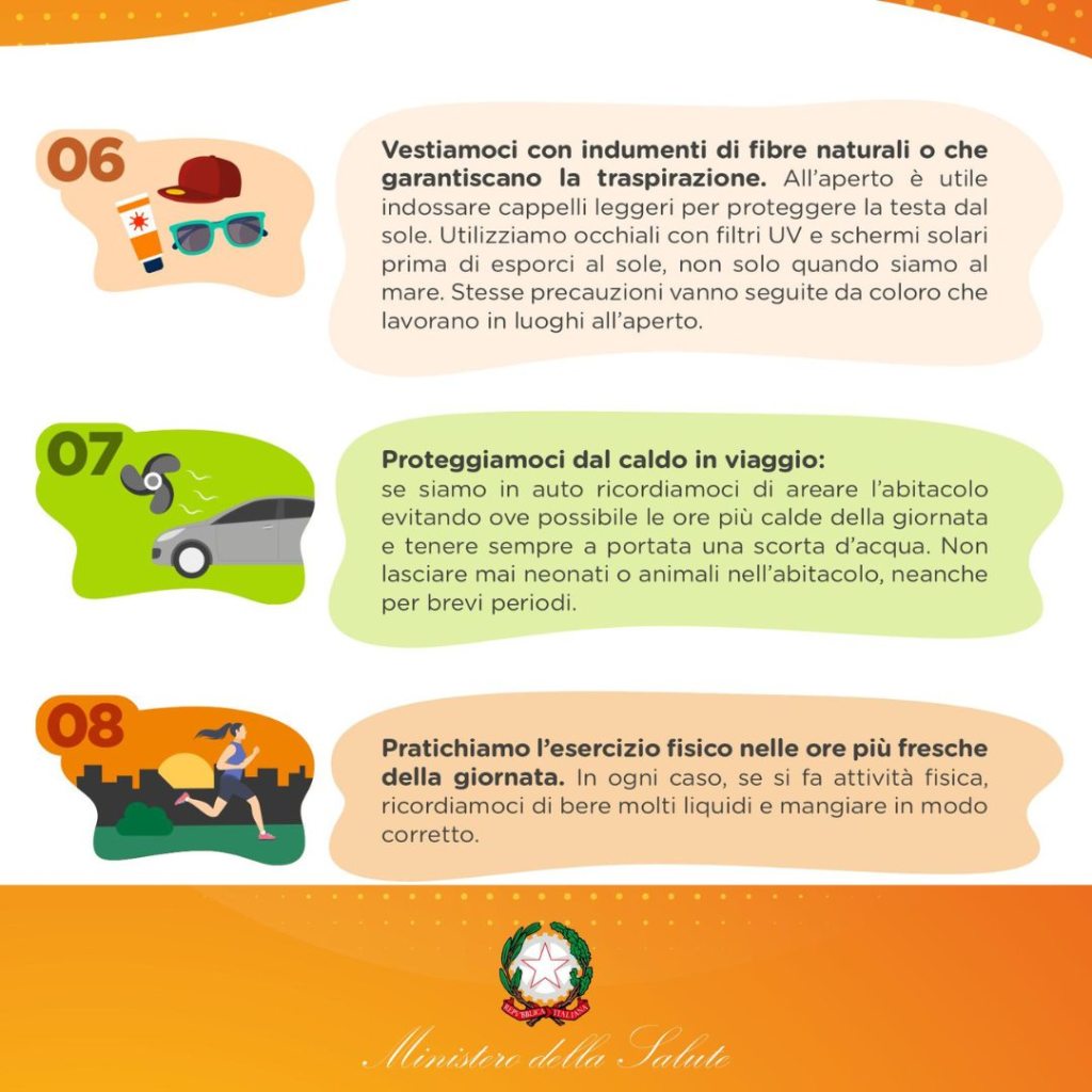 Si ricorda che la protezione dal caldo è una responsabilità di tutti. Seguire queste semplici regole comportamentali può contribuire a salvaguardare la salute di tutti durante le ondate di calore estive.