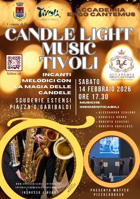 Sabato 14 febbraio, alle ore 17.30, le Scuderie Estensi di Piazza Garibaldi a Tivoli ospiteranno “Candle Light Music”, un suggestivo concerto a lume di candela inserito nel calendario delle iniziative culturali cittadine.