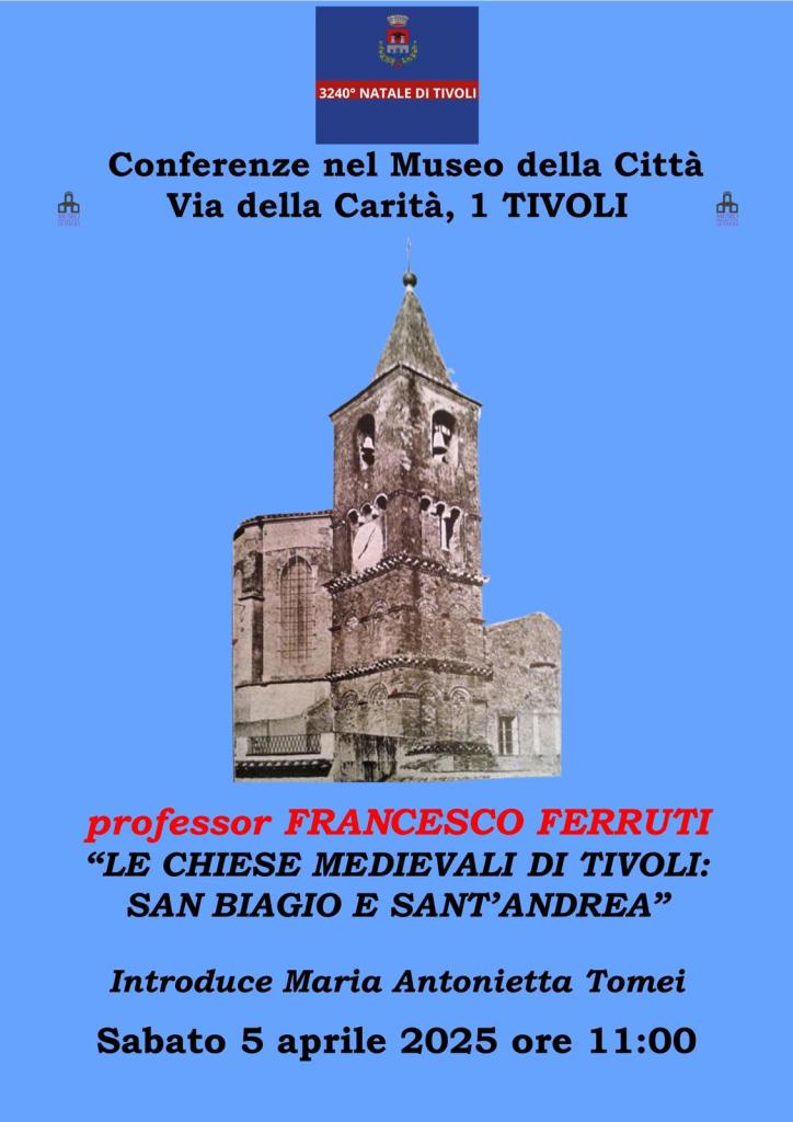 San Biagio e Sant’Andrea sono due chiese simbolo della spiritualità e dell’identità di Tivoli. Attraverso l’approfondimento del Professor Ferruti, il pubblico avrà l’occasione di riscoprire secoli di storia, architettura religiosa e vita comunitaria, legati a questi due luoghi sacri.