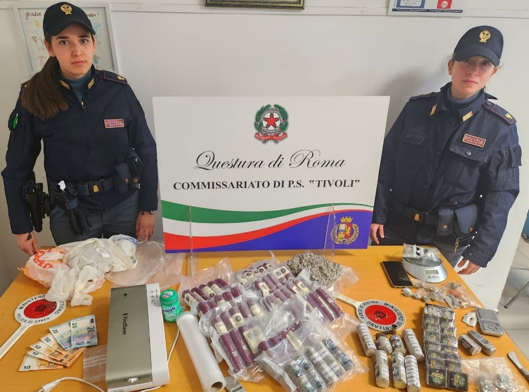 Si comunica, nel rispetto dei diritti della persona e al fine di garantire il diritto di cronaca costituzionalmente garantito, che nella serata del 29 febbraio 2024, nel corso dei servizi di pattugliamento e controllo del territorio, gli Agenti del Commissariato di P.S. Distaccato “Tivoli-Guidonia” hanno tratto in arresto, a Tivoli Terme, un pluripregiudicato di 31 anni di Tivoli, ritenuto responsabile di detenzione ai fini di spaccio di circa kg. 7,5 di sostanza stupefacente del tipo hashish e marjuana, oltre a 36 gr. circa di cocaina.