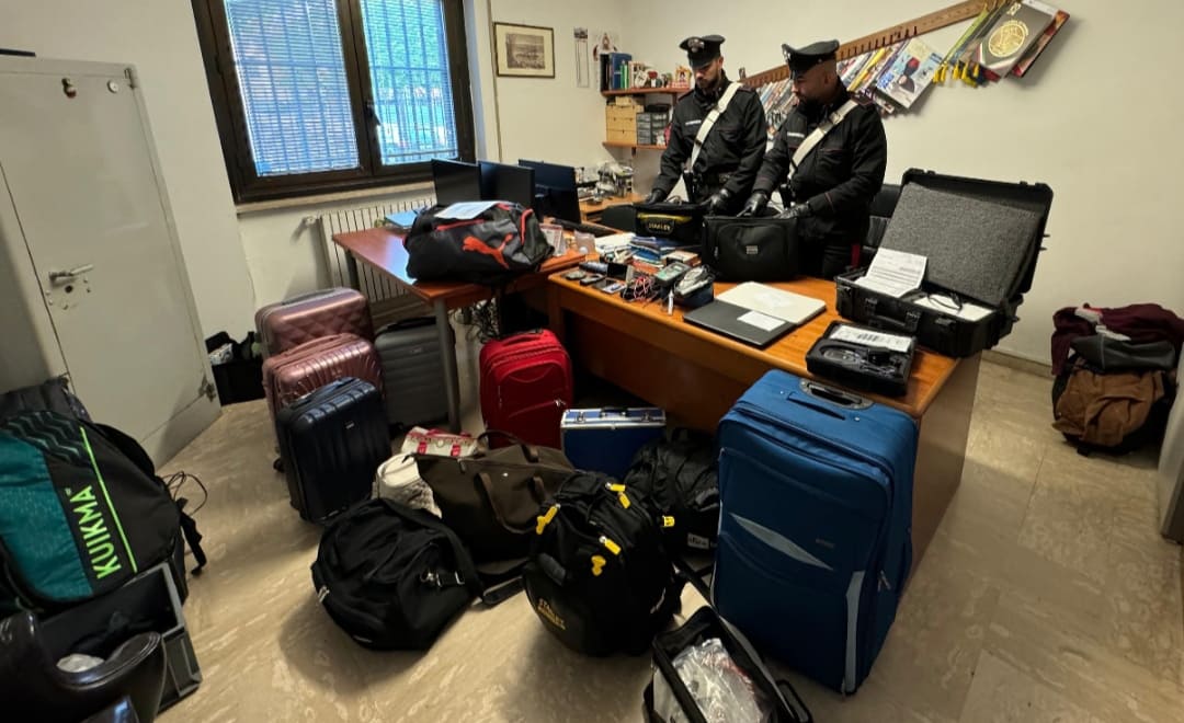 I Carabinieri hanno inoltre rinvenuto nella disponibilità degli indagati una rilevante quantità di oggetti di provenienza furtiva, tra cui più di dieci trolley, due computer portatili, una fotocamera, numerosi attrezzi da lavoro ed anche strumentazione medica; tutti gli oggetti, dopo approfonditi accertamenti, sono stati restituiti ai legittimi proprietari, che hanno ringraziato calorosamente i militari per il rapido ed efficace intervento.