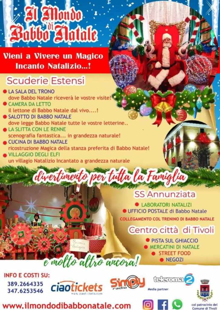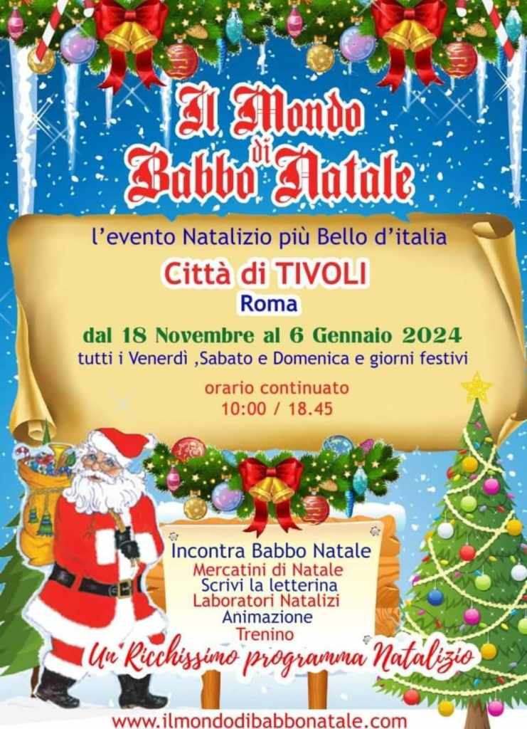 Il Comune di Tivoli ha deliberato un’offerta di intrattenimento natalizio davvero speciale per il 2023, che porterà la magia delle festività direttamente in città. Da novembre 18 a gennaio 6, saranno previste numerose occasioni per i più piccoli di incontrare Babbo Natale e immergersi completamente nell’atmosfera natalizia.