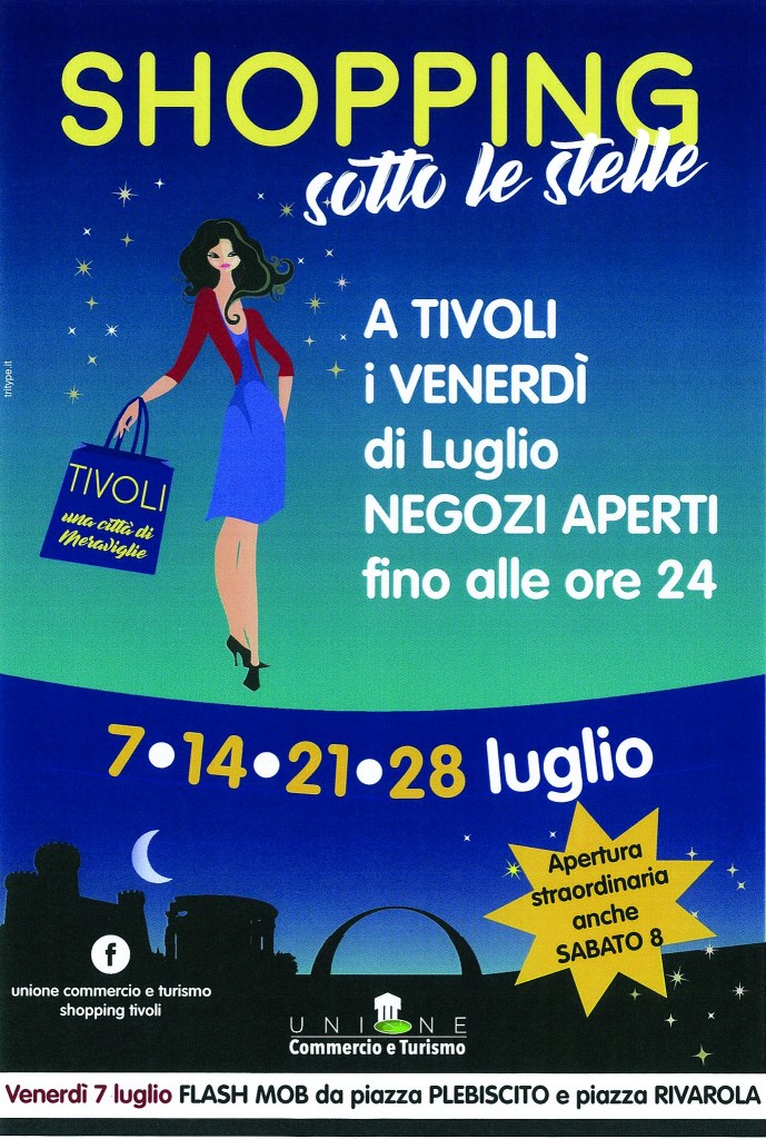 Questa iniziativa, denominata “Shopping sotto le stelle“, è stata organizzata grazie all’Unione Commercio e Turismo, che ha lavorato duramente per offrire a residenti e visitatori un’esperienza unica nel cuore di Tivoli. Saranno quattro le date da segnare in agenda: venerdì 7 luglio (con apertura straordinaria anche il sabato 8 luglio), venerdì 14 luglio, venerdì 21 luglio e venerdì 28 luglio.