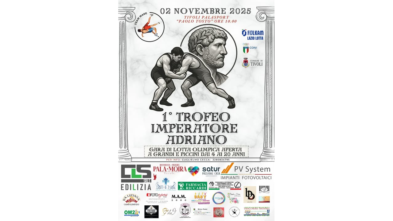 Domenica 2 novembre 2025, presso il Palasport “Paolo Tosto” di Tivoli, si terrà il 1° Trofeo “Imperatore Adriano” di Lotta Olimpica, con inizio alle ore 10:00.