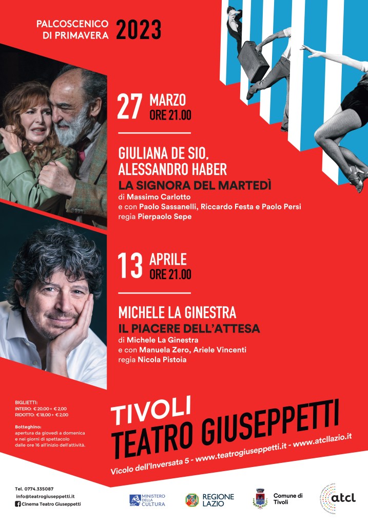 Palcoscenico di Primavera è una prestigiosa anteprima della prossima stagione teatrale 2023/2024, organizzata al Cinema Teatro Giuseppetti, dal Comune di Tivoli in collaborazione con ATCL – Circuito multidisciplinare del Lazio sostenuto da MIC – Ministero della Cultura e Regione Lazio.