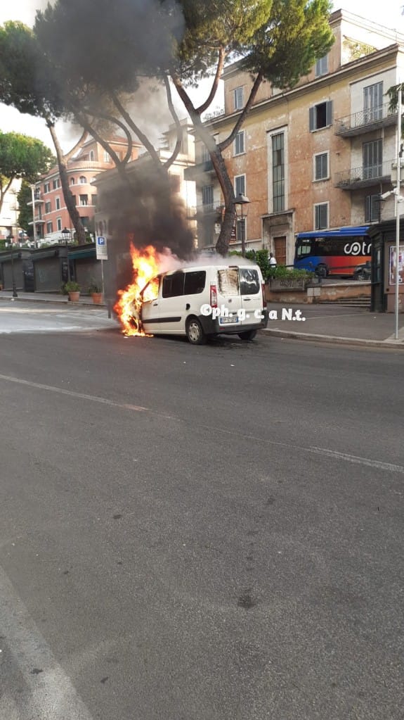 Le fiamme hanno rapidamente avvolto il veicolo, generando densi fumi neri che hanno immediatamente attirato l’attenzione dei passanti e dei conducenti circostanti.
